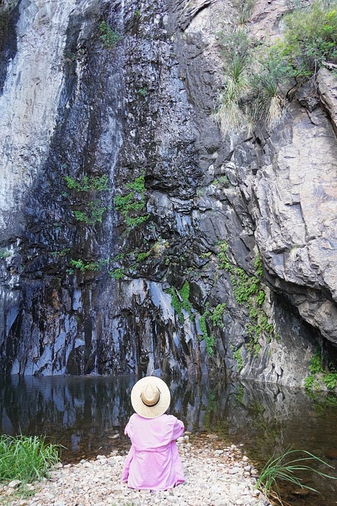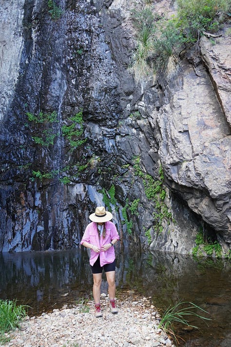 The hike itself is a little over 5 miles round trip, but just know that you’ll have to park about 1.5 miles from the actual trailhead and walk in from there. It adds a little distance, but honestly, it’s part of what keeps the experience what it is. I would start early because there is very little shade until you get to the falls.